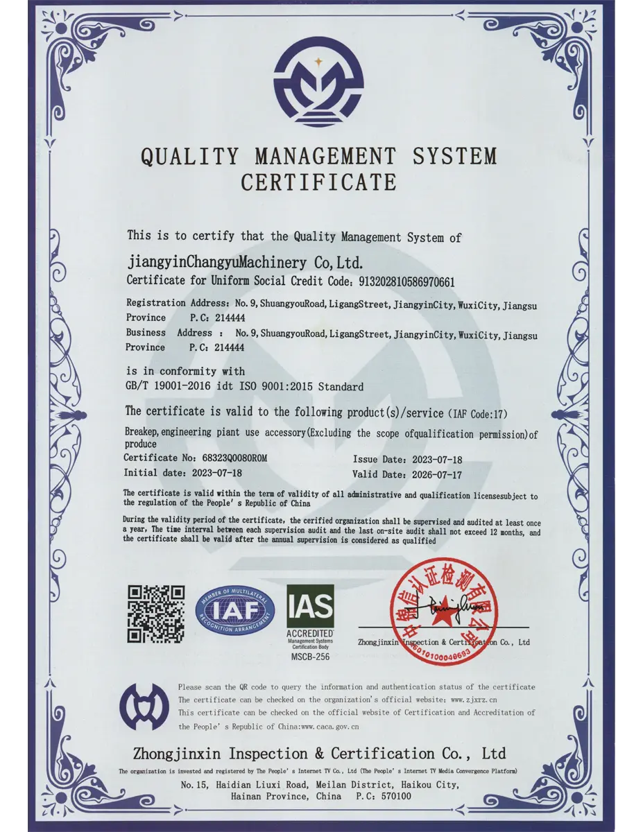 Founded in 2012, Changyu Machinery is a leading enterprise in the construction machinery sector in Jiangyin, China. Leveraging its exceptional strength, Changyu Machinery boasts competitiveness and influence in the global market, earning it the trust of clients across the Middle East and North Africa.